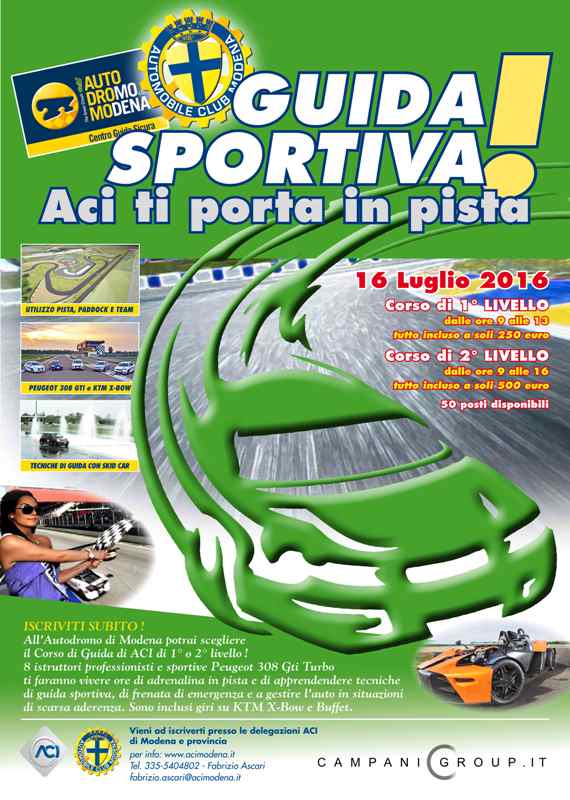 Sabato 16 Luglio, Automobile Club Modena organizza il 3° Corso di Guida Sportiva all’ Autodromo di Modena