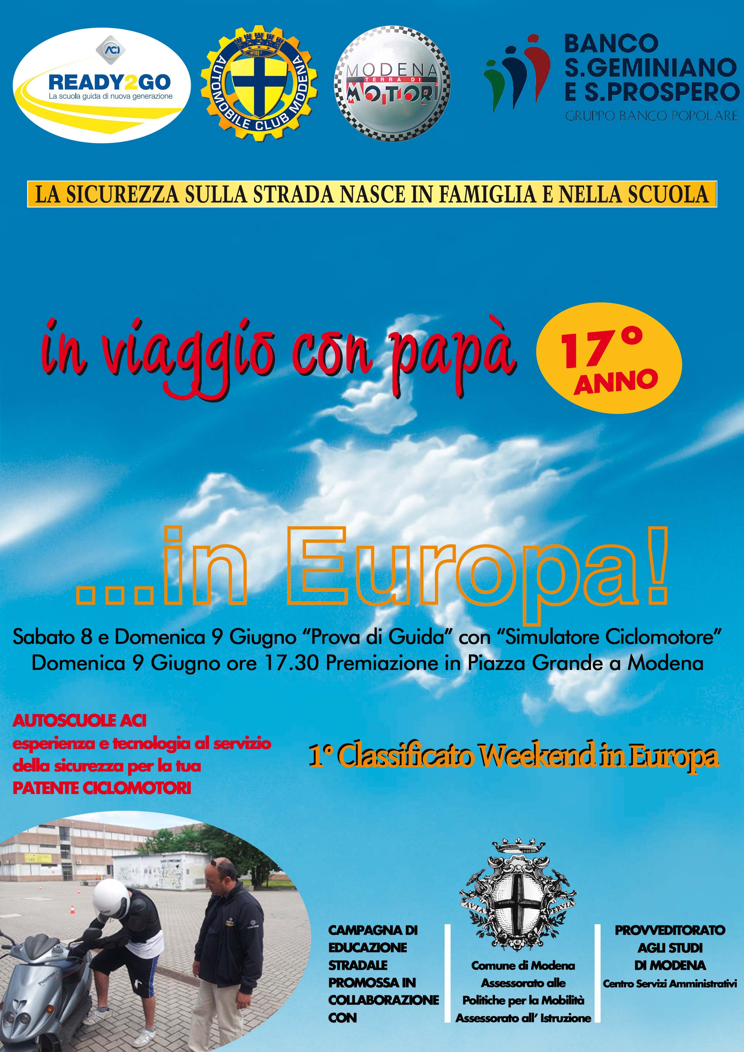Il telefono dell’ACI Modena squilla in continuazione e sono al momento centinaia le richieste di informazioni e le domande di partecipazione alla fase finale di “In Viaggio con Papà”, la campagna di educazione stradale dell’Automobile Club Modena giunta quest’anno alla 17° edizione. “La nostra iniziativa ha ormai tanti anni di storia – dichiara il Dott. Giuseppe Pottocar, direttore dell’Aci – ma la formula <giocando si impara l’educazione stradale>, unita alle nuovissime tecnologie informatiche, si rivela ancora oggi estremamente efficace e gradita ai nostri giovanissimi partecipanti”.