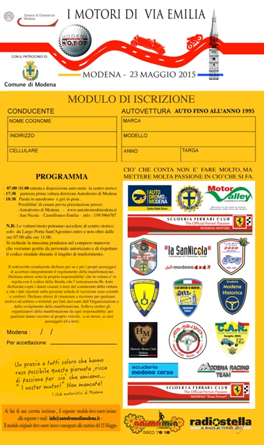 I MOTORI DI VIA EMILIA, MODENA 23 MAGGIO 2015 - SCARICA IL COUPON PER PARTECIPARE