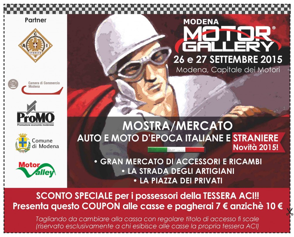MODENA MOTOR GALLERY TORNA IL 26 E 27 SETTEMBRE - PREZZO SCONTATO PER I SOCI ACI